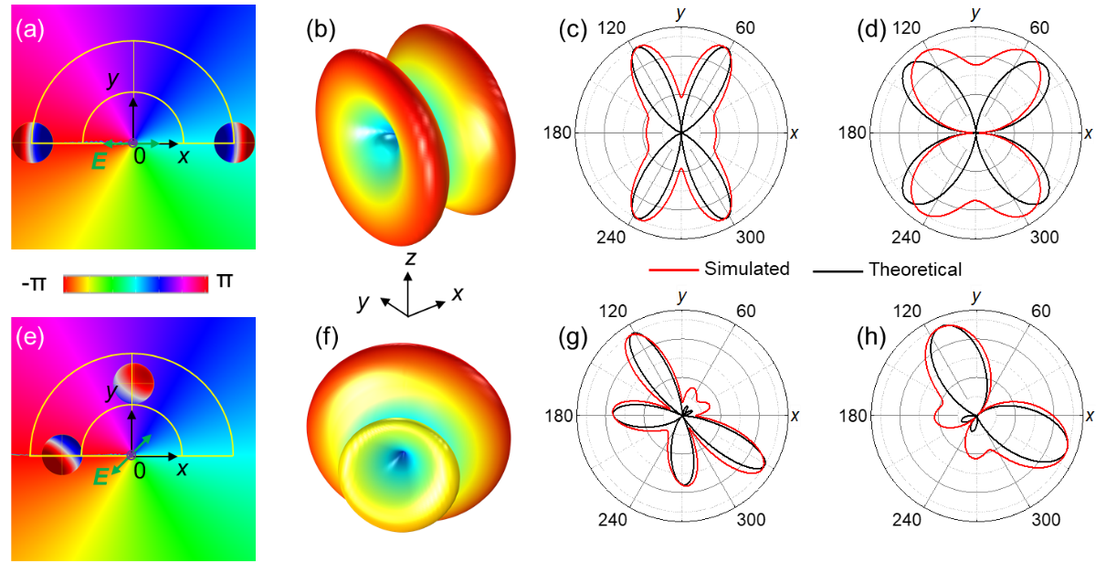 文章深入研究了轨道角动量(OAM)自由度下表面等离激元纳米结构与光的相互作用。光的轨道角动量为光与物质的相互作用提供了一个新的自由度,然而如何用这个物理维度来控制这种相互作用仍然是一个开放的问题。在本文中,杨大杰等人开发了一种支持光学OAM模拟的数值方法,从而提出包含OAM物理维度的复杂表面等离激元行为的深刻见解。文章从理论上证明了等离激元纳米结构可以作为高效的天线来接收和定向辐射OAM光束的能量。光学OAM和自旋角动量(SAM)之间的相互作用导致新的等离激元极化和二次辐射,离开OAM光源技术这些是无法实现的。对于阵列纳米天线,通过波束的OAM可控制表面等离激元子单元间的相位延迟,利用表面等离激元子单元在远场的相干作用可实现定向辐射,其功能类似于相控阵天线。这些发现在OAM领域拓展了我们对纳米表面等离激元的认识,在量子信息处理和超弱生化信号的动态及超分辨率传感方面具有广阔的前景。