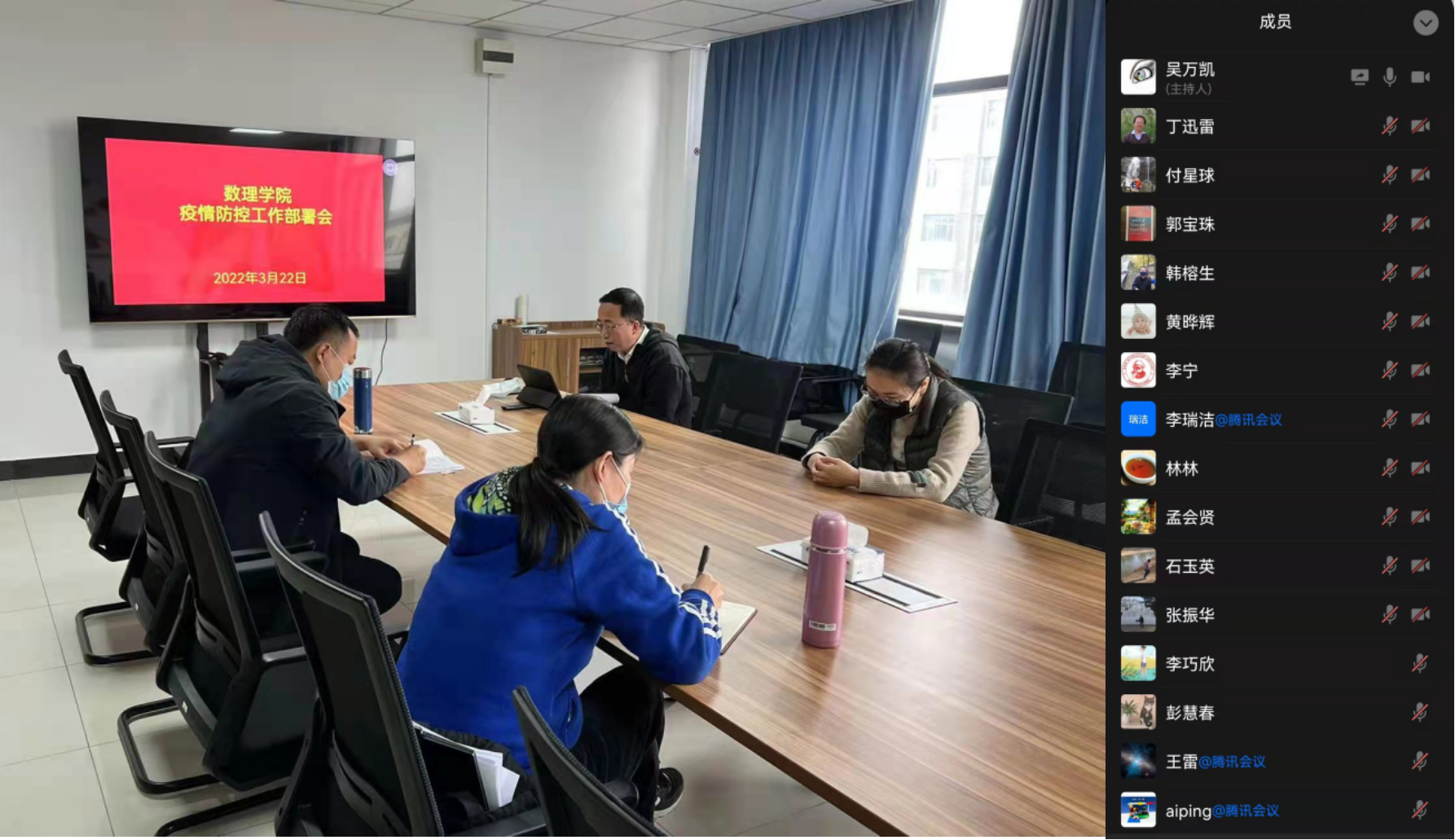 3月22日,公司党委召开疫情防控工作部署会,传达贯彻学校疫情防控部署会精神,进一步落实学校疫情防控工作部署。学院全体党委委员、领导班子成员、各教工党支部书记、教研室主任、研究所所长和辅导员通过线上线下相结合的方式参会。公司党委书记吴万凯主持会议。